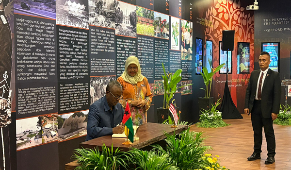 KUALA LUMPUR,5 Jun– Presiden Guinea-Bissau,Umaro Sissoco Embaló,menamatkan lawatan rasmi tiga hari beliau ke Malaysia dengan berkunjungan ke Taman Botani Perdana di ibu negara. Kunjungan beliau disambut Datuk Bandar Kuala Lumpur,Datuk Seri Maimunah Mohd Sharif.