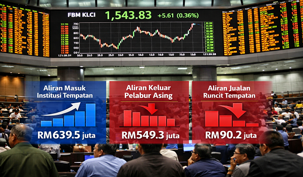 Menurut MBSB Investment Bank Bhd (MBSB IB),pelabur asing pula meneruskan aliran keluar bersih untuk minggu ketiga berturut-turut,melibatkan jumlah bersih sebanyak RM549.3 juta.